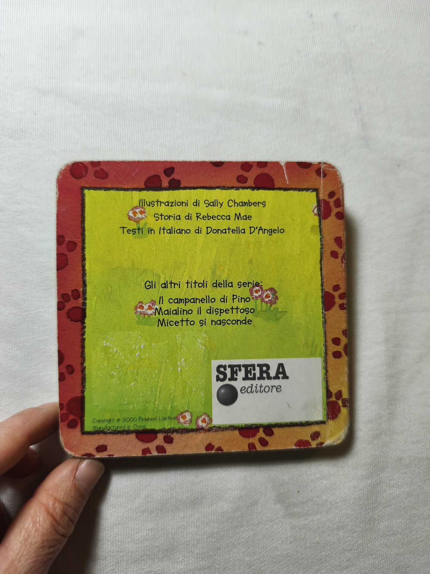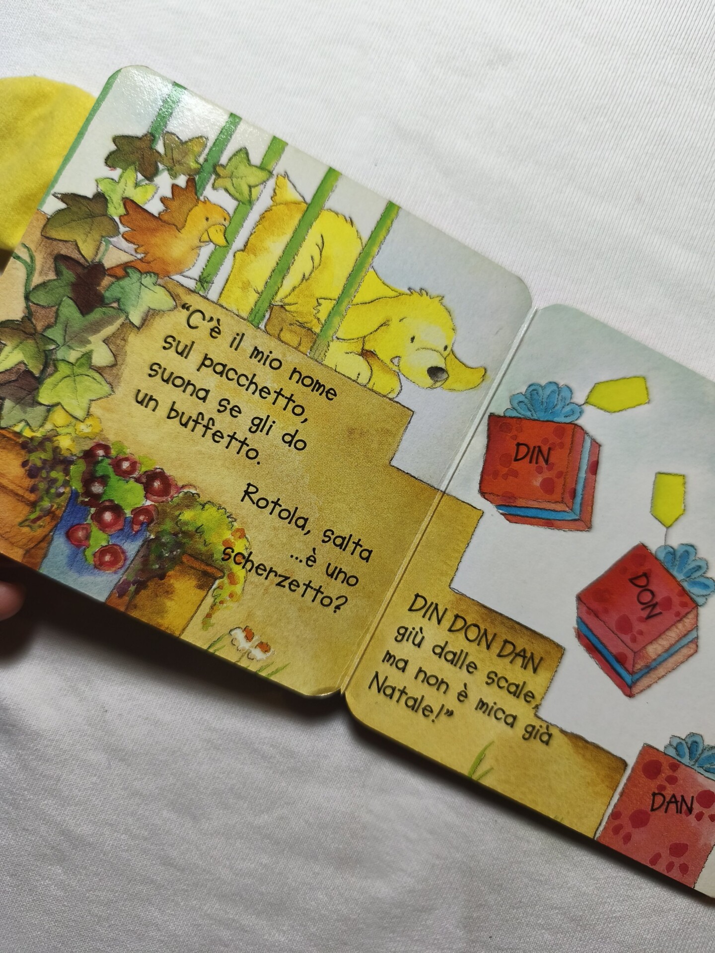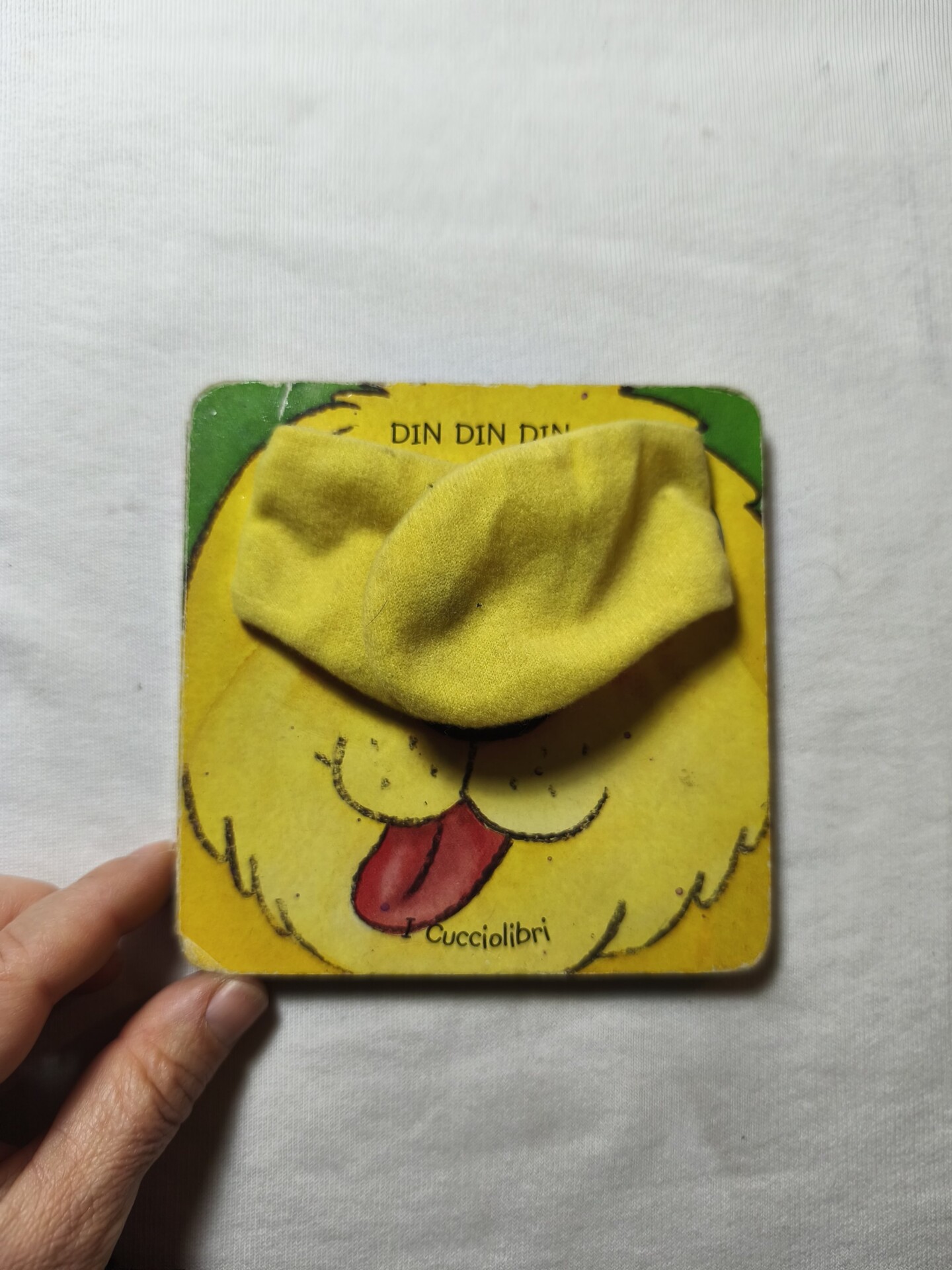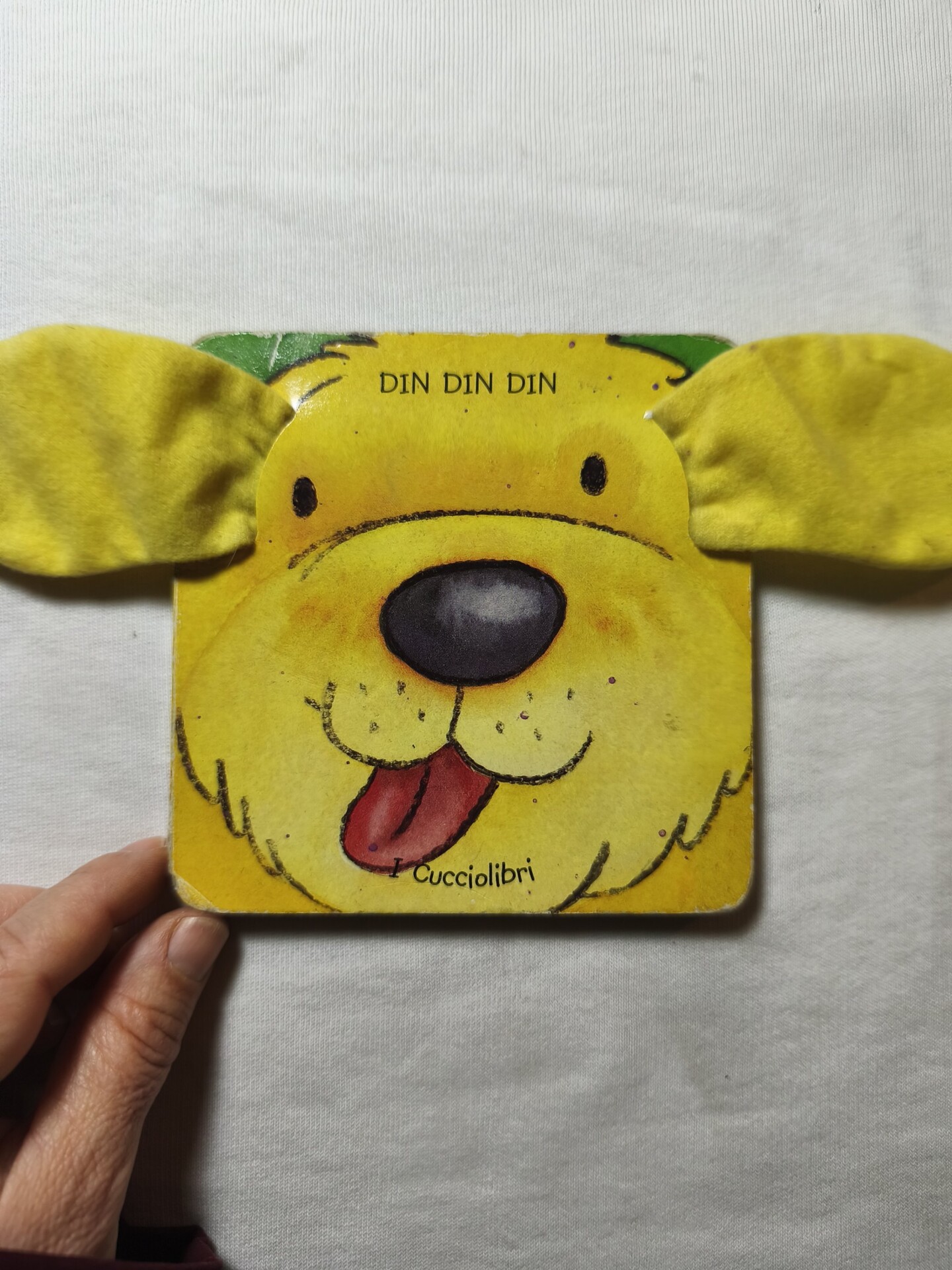 Libro tattile e sonoro con il campanellino all’interno delle orecchie di peluche