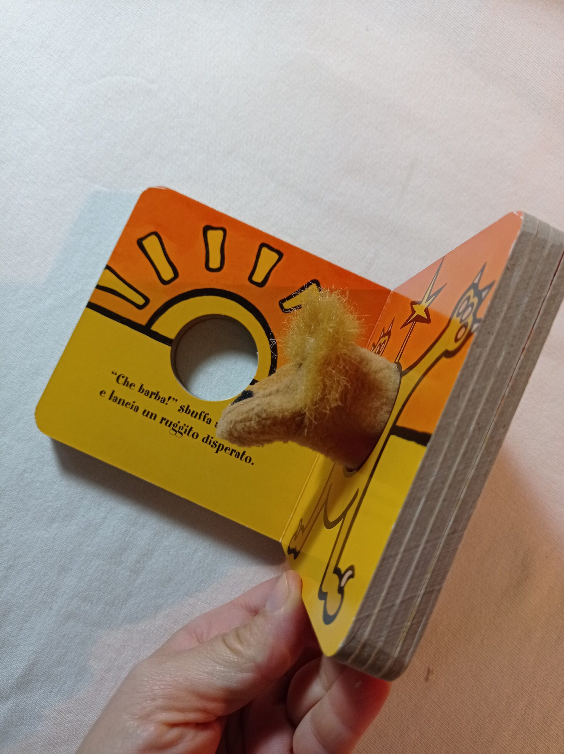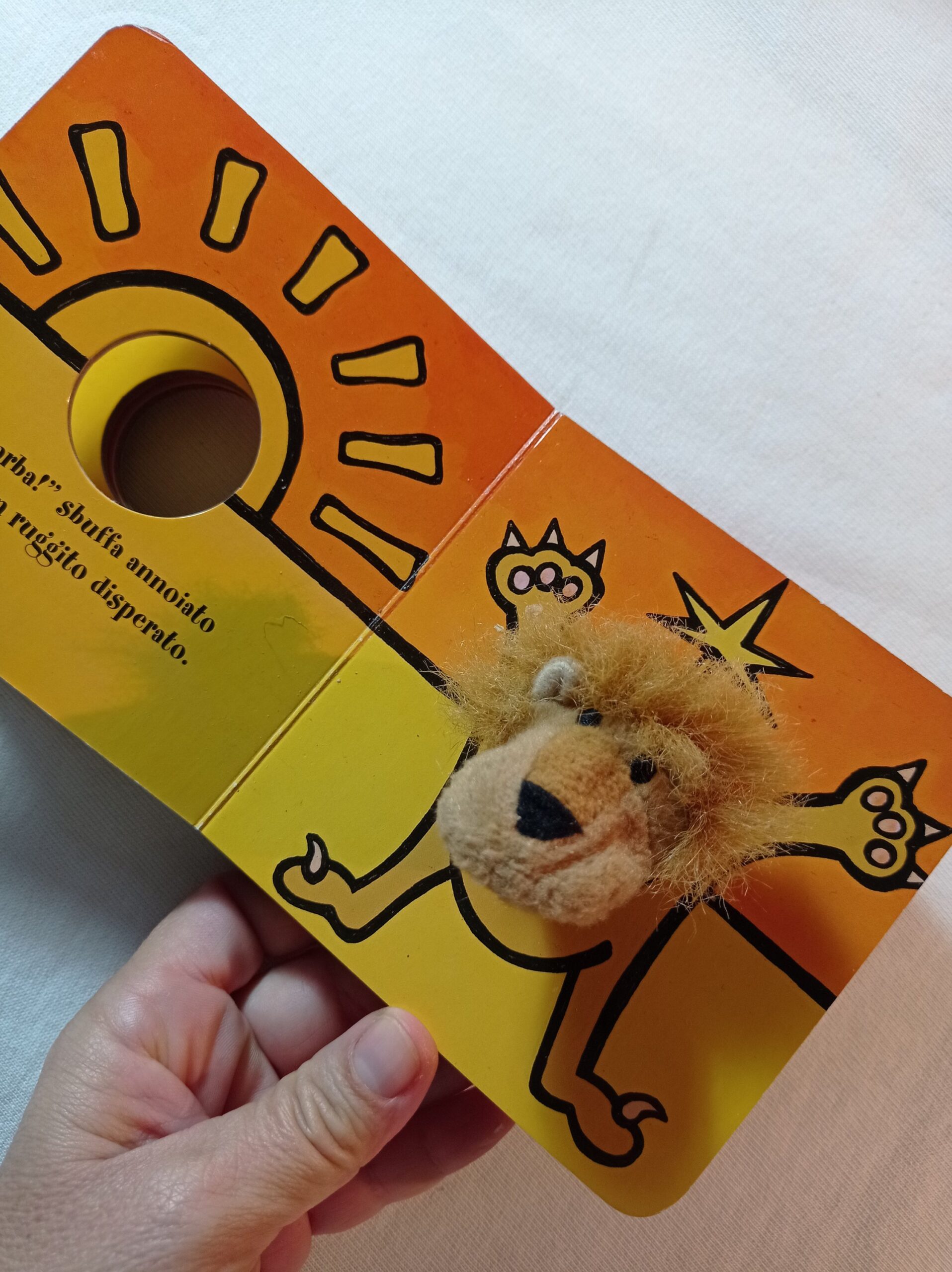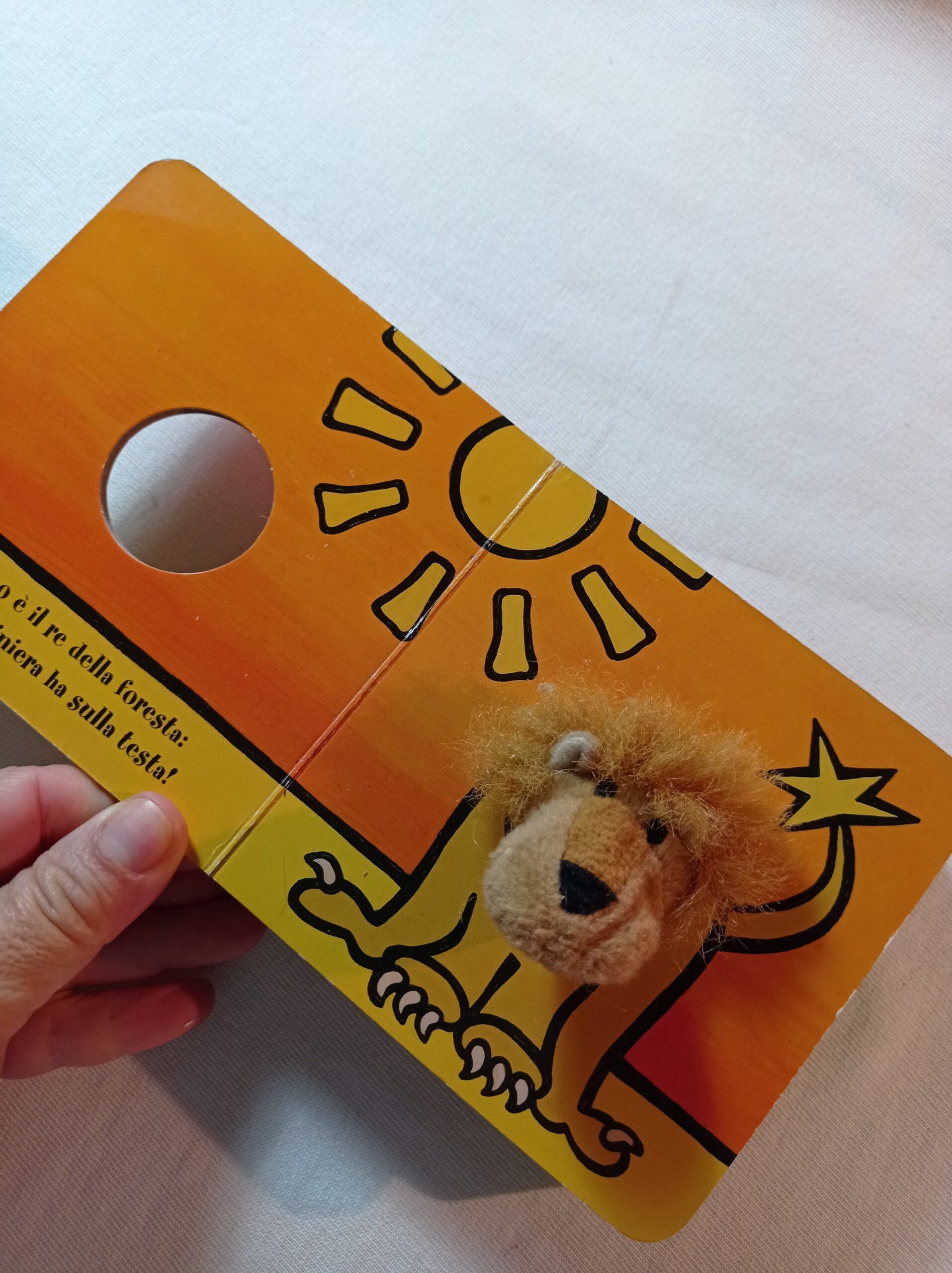 Libro gioco con la testa del leone che si muove con un dito